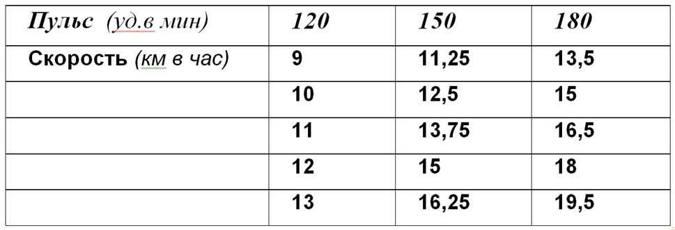 - Таблица эффективной структуры макроцикла для циклических видов спорта